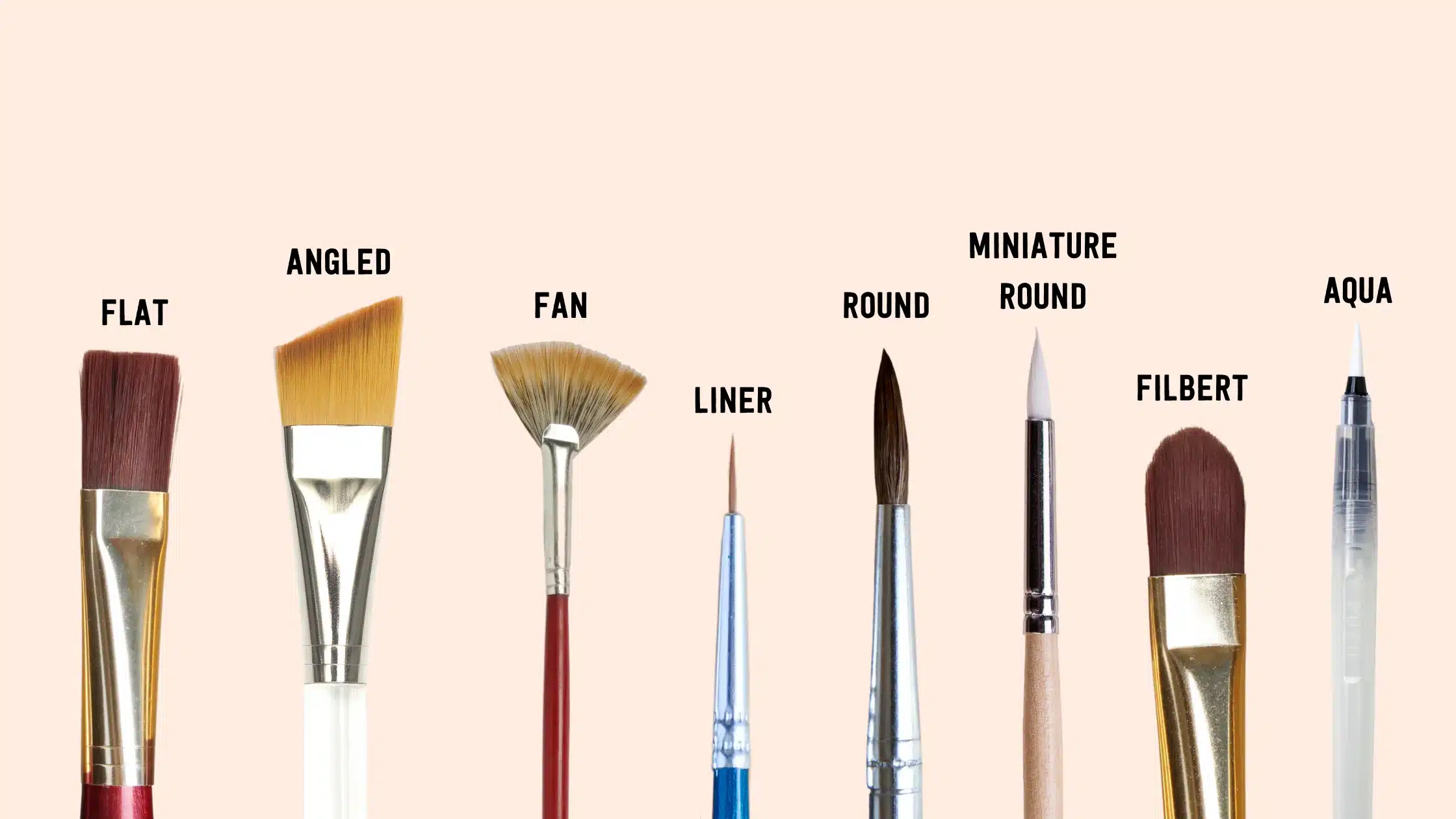 Think about your project. Big areas need flat brushes. Edges need angled ones. Tiny details need small round or liner brushes.